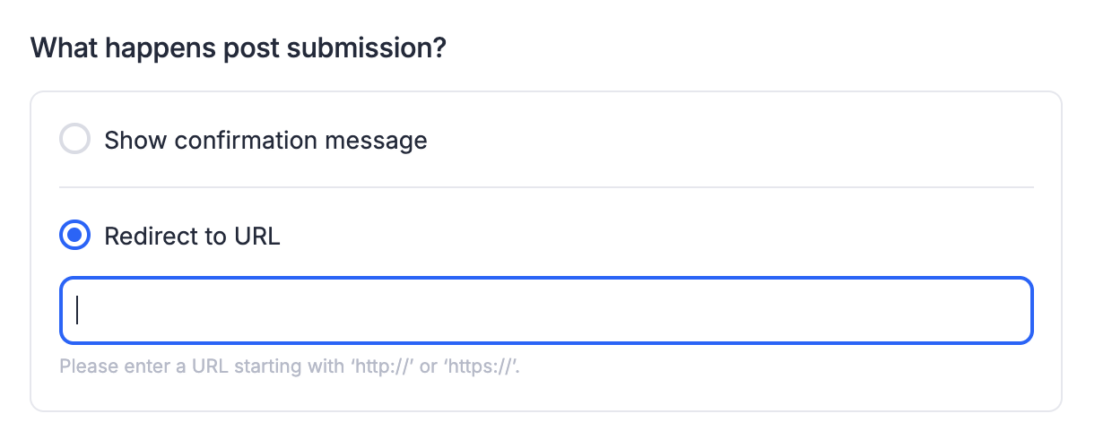 Redirect to URL: Automatically redirect users to a specified URL once they submit the form.