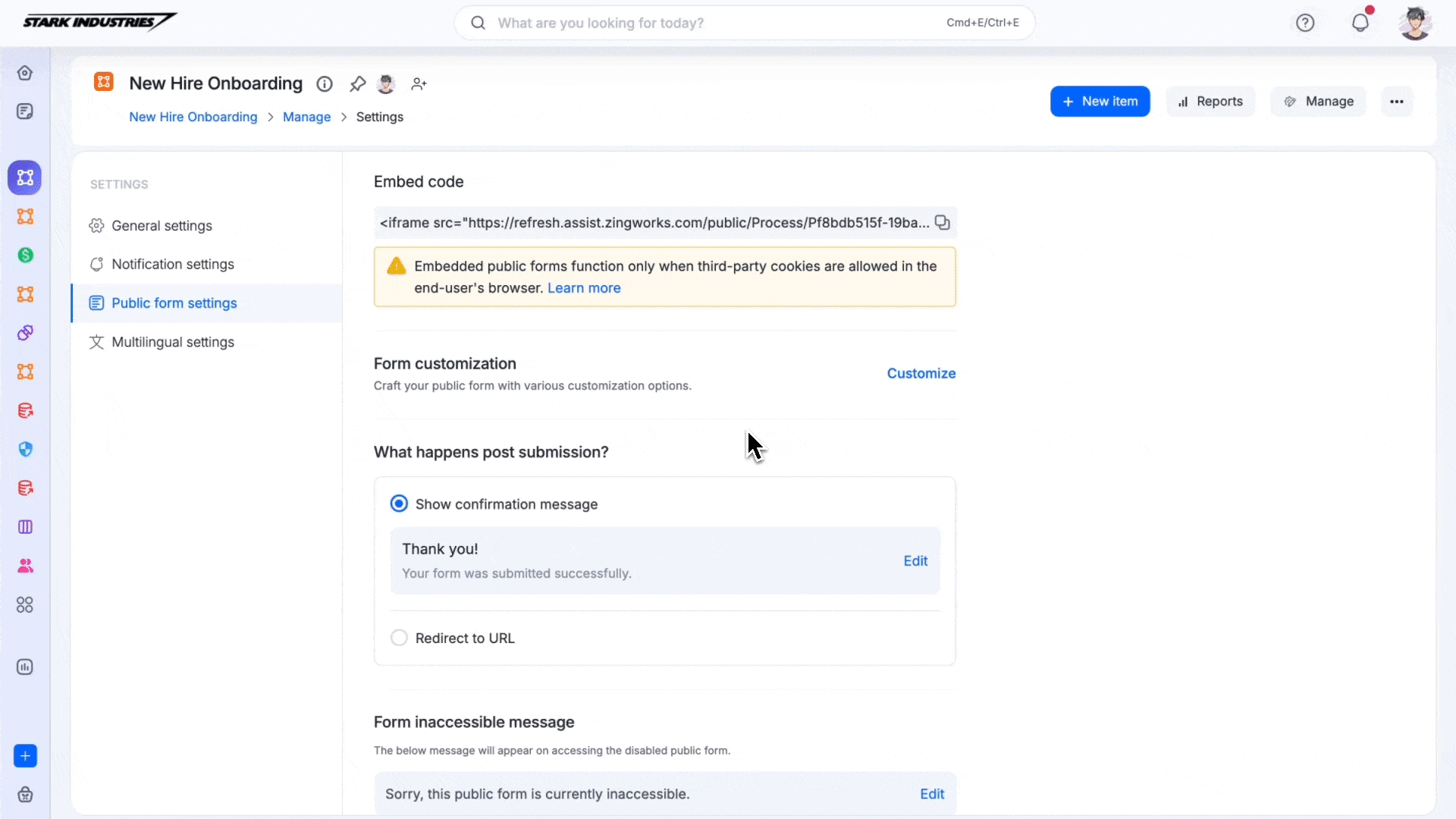 - Paste the code snippet to your website or any external platform where you would like to host the public form.