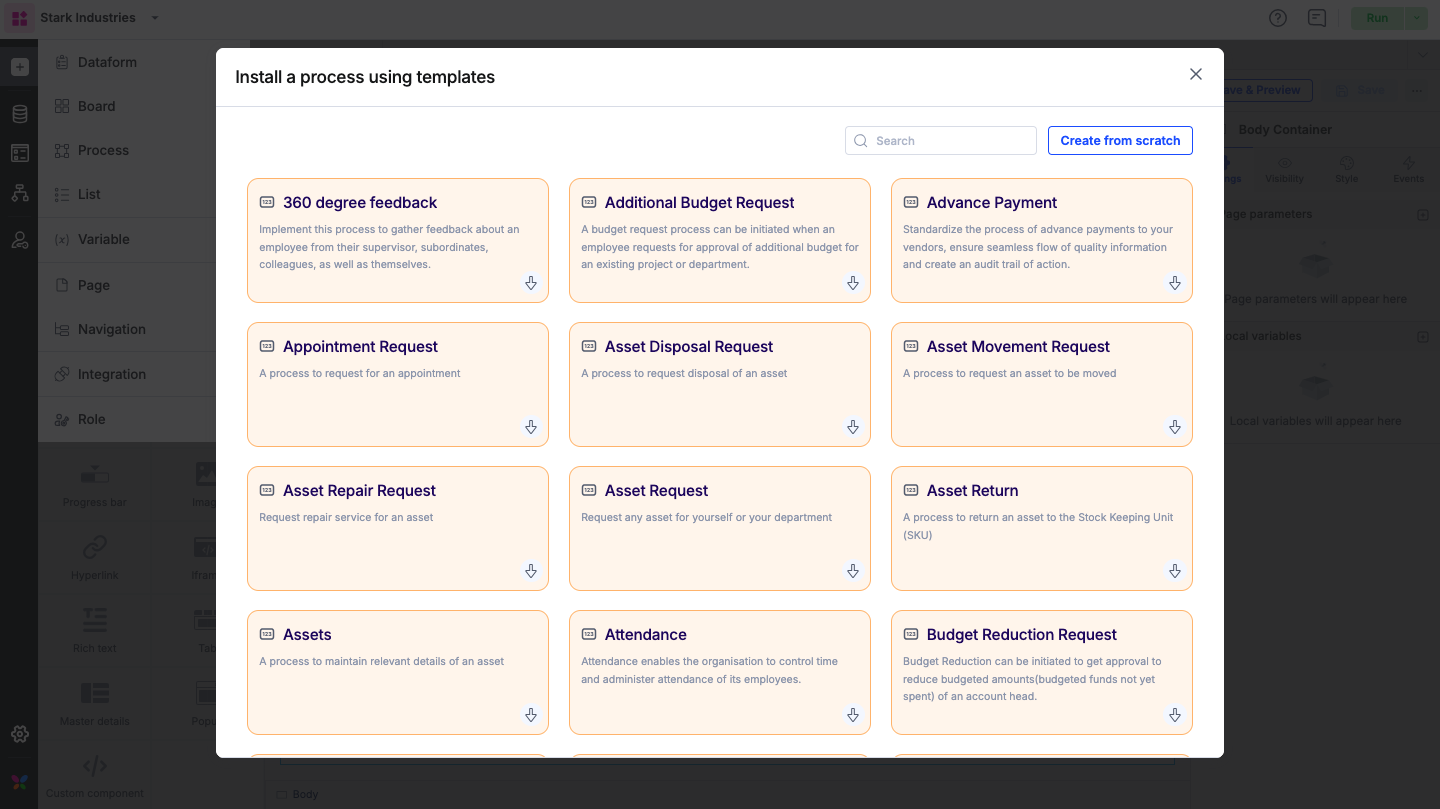 To create a process inside your app builder,
