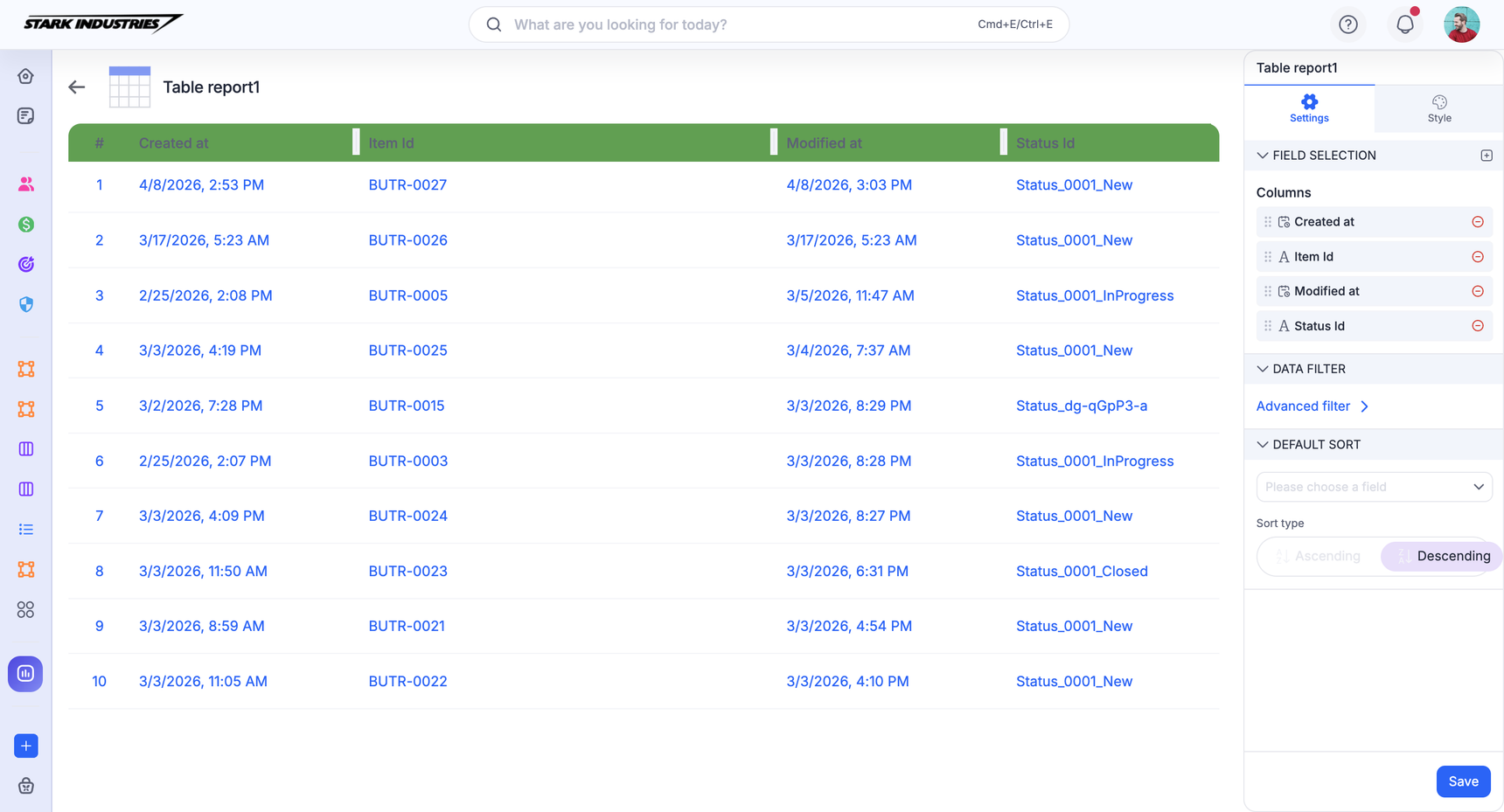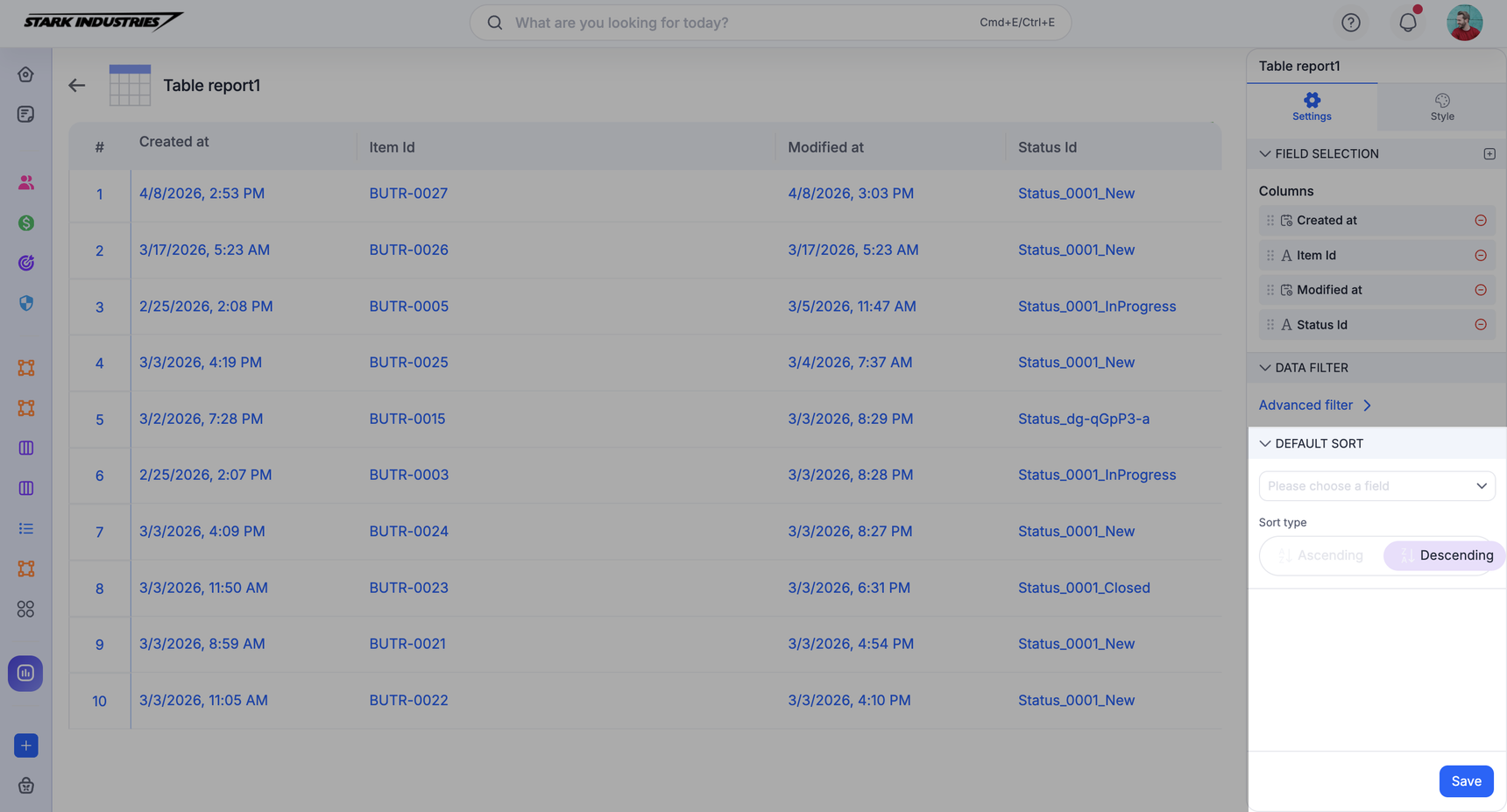 You can configure a report to customize the way data is presented in a report. You can determine which fields are displayed. Additionally, adding filters and sorting lets you narrow down the data, making it easier to analyze and draw insights.