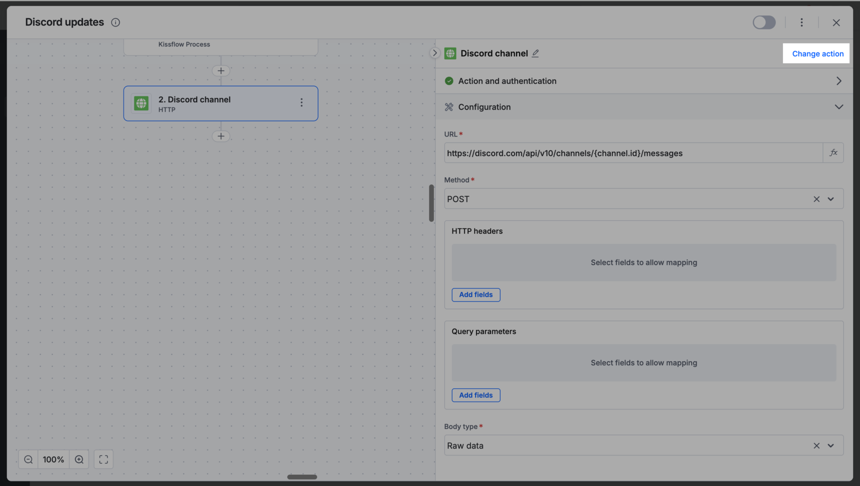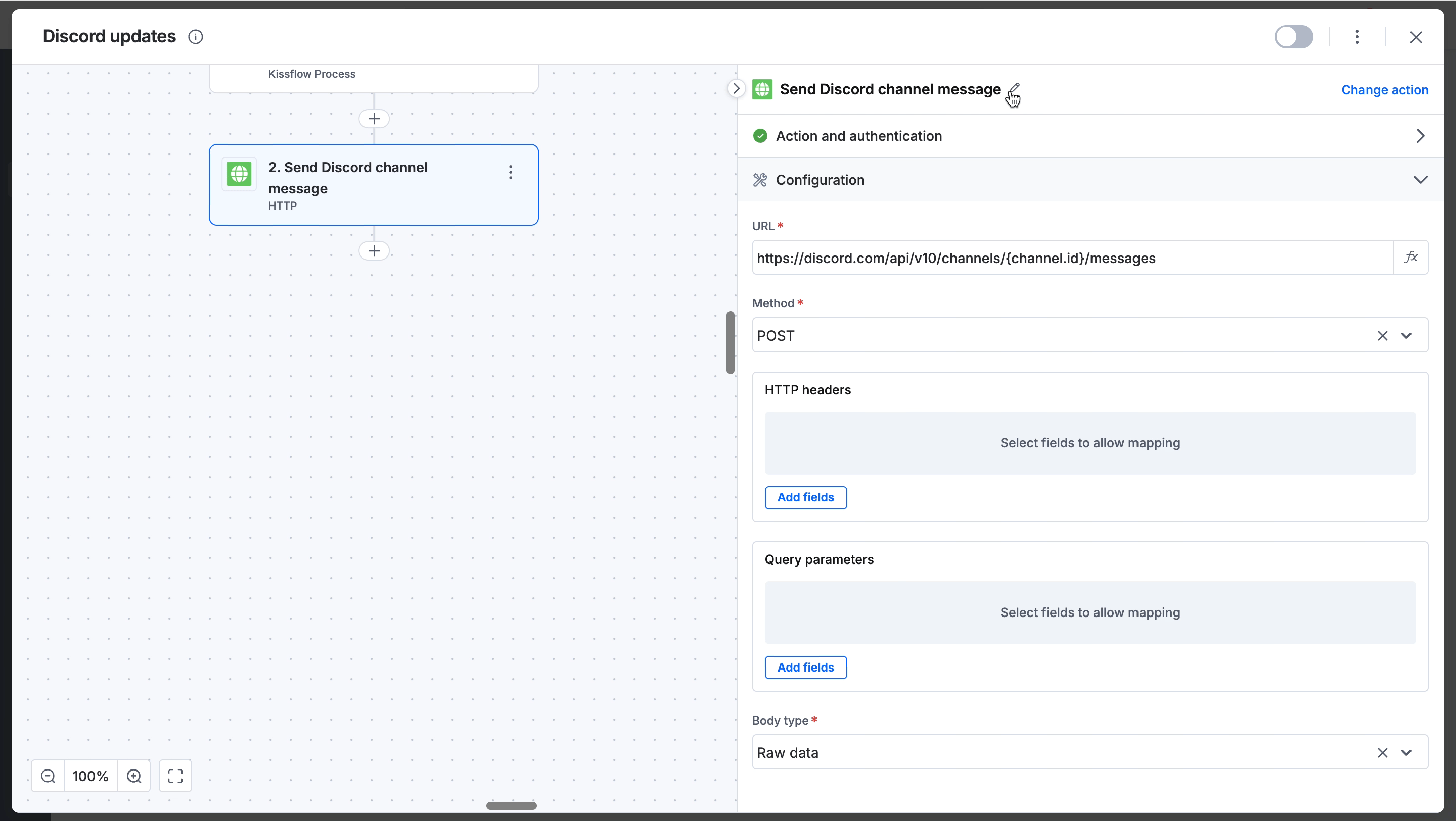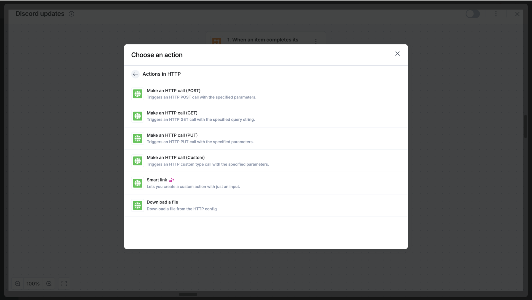 Define the action: In the input box, describe your goal in plain English. For example, Post a message to a Discord channel.