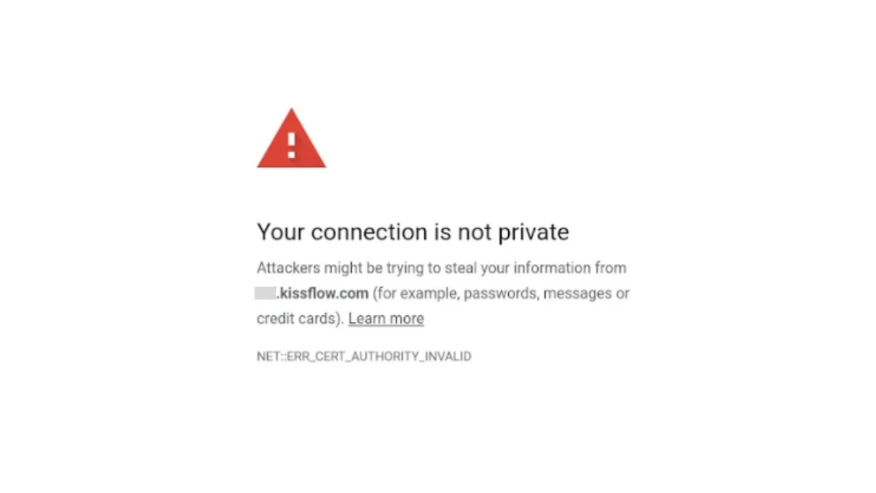 Due to this change, if you are accessing Kissflow through systems that cannot receive OS/browser updates regularly (for example, legacy servers, embedded devices, or isolated environments) you may encounter one of the following SSL trust errors. This means you will no longer be able to access Kissflow.