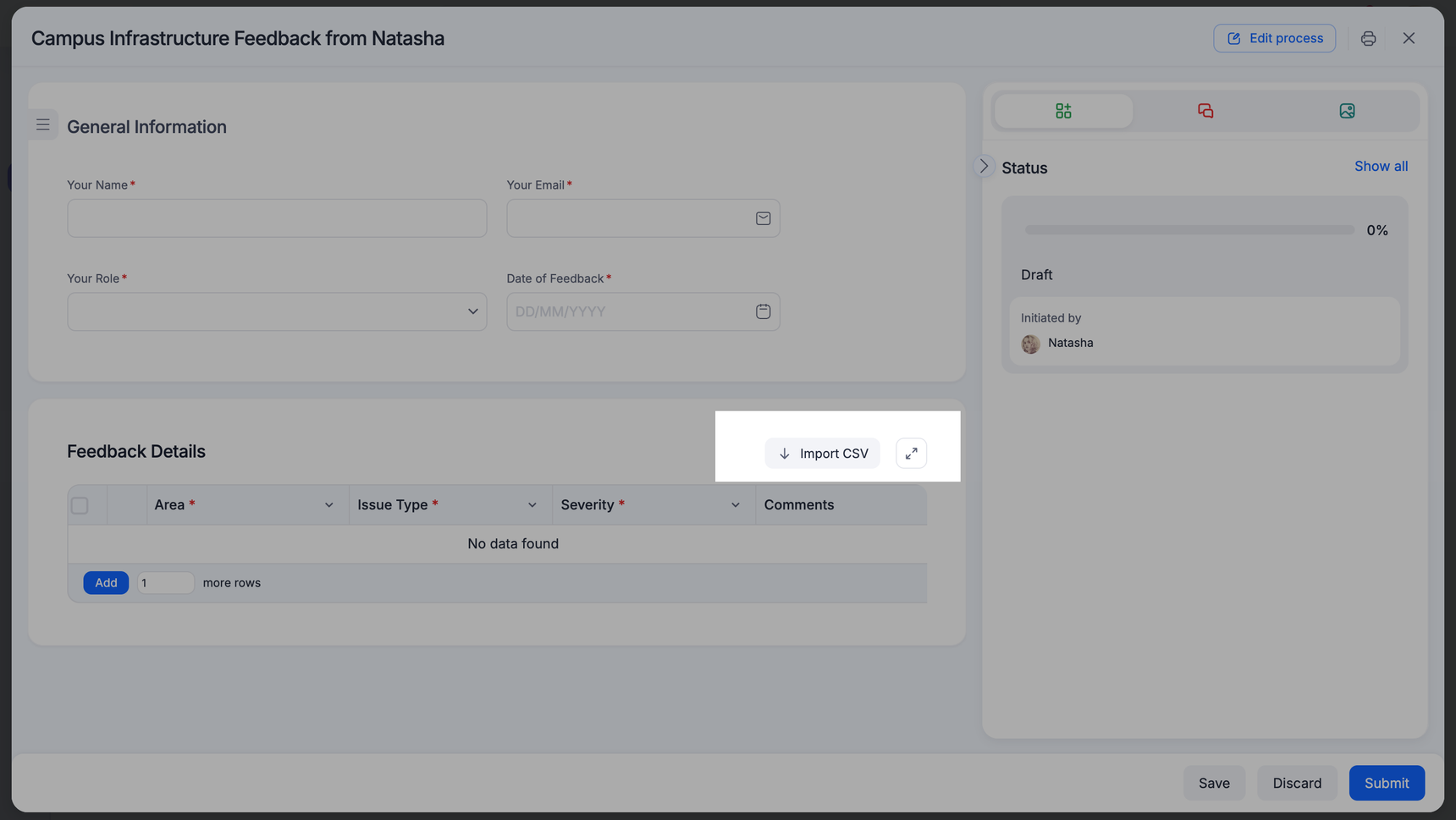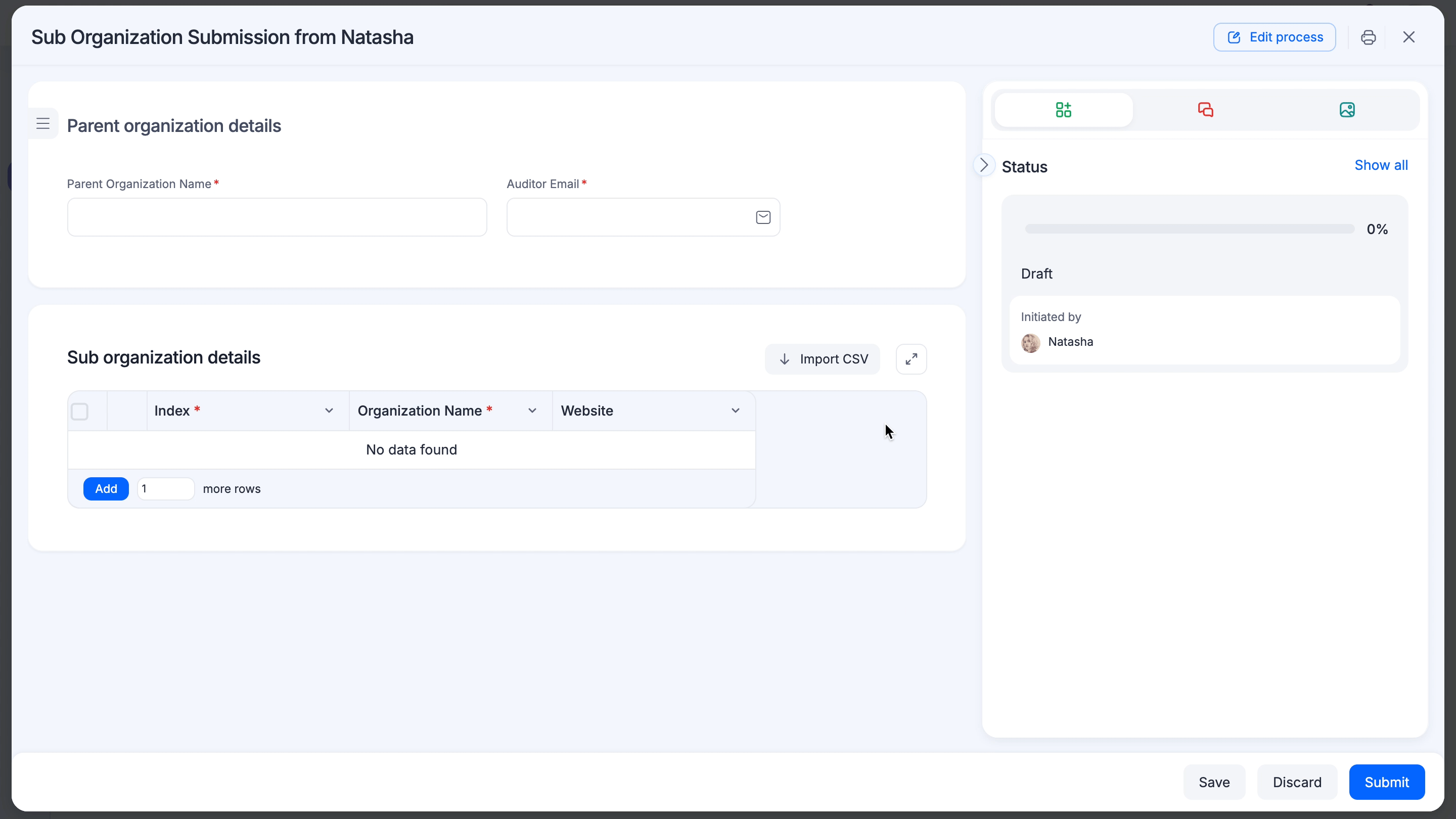 - On the top right corner of the child table, click Import CSV.