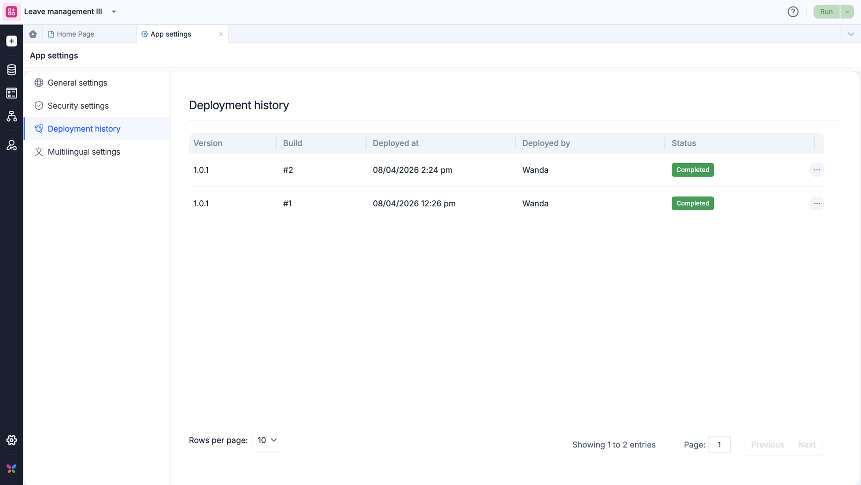 You can track the deployment history of your app inside the development and test environments separately. This will help you monitor all the changes that were implemented and rolled out during every app version and build.