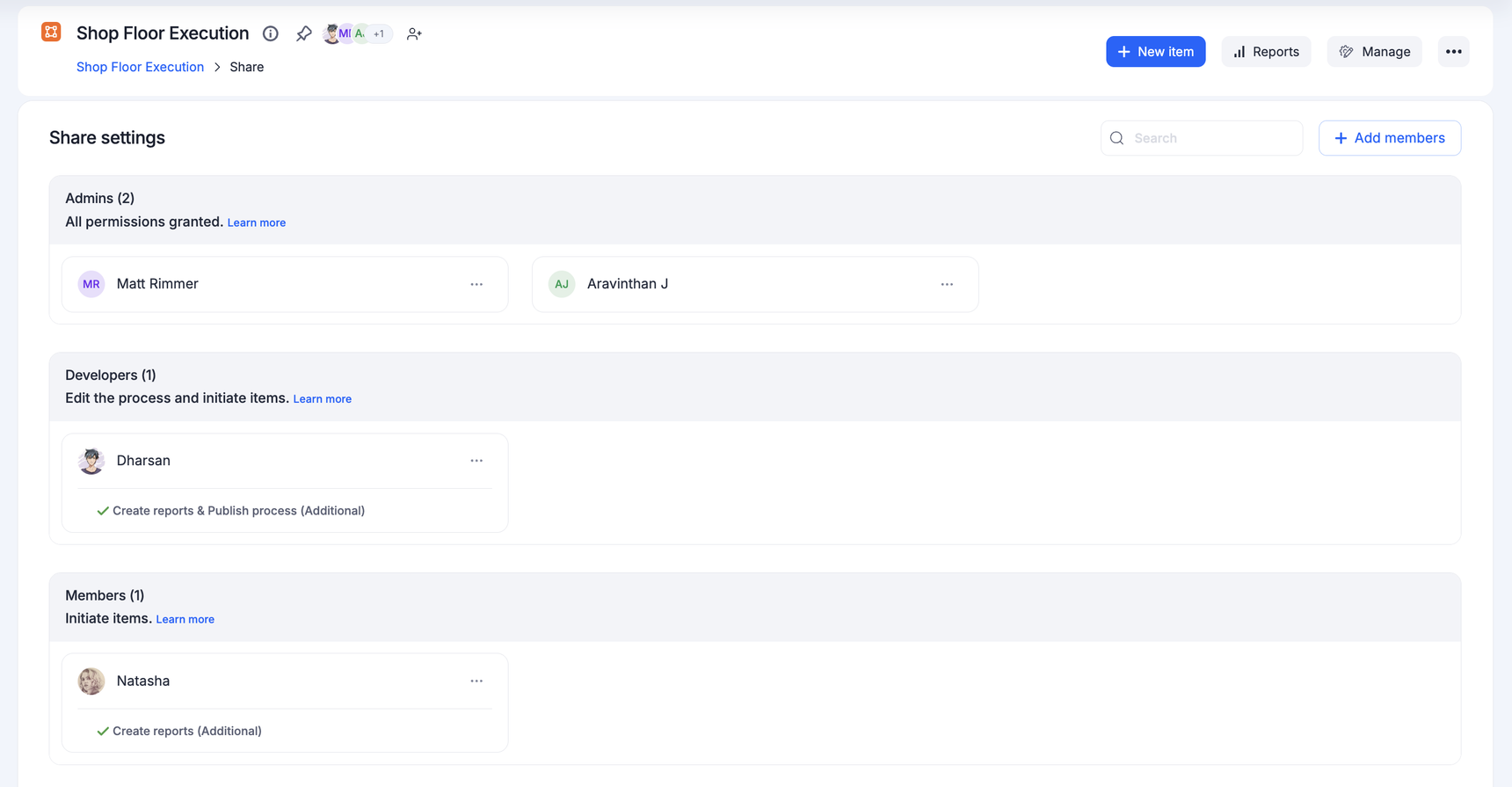 Whoever creates a process becomes the Admin of the process by default. They can perform any operation related to a process, ranging from adding or removing members to modifying or deleting process data. You can share the process with any flow member or group within your organization and also invite external users to be a part of your process as necessary.