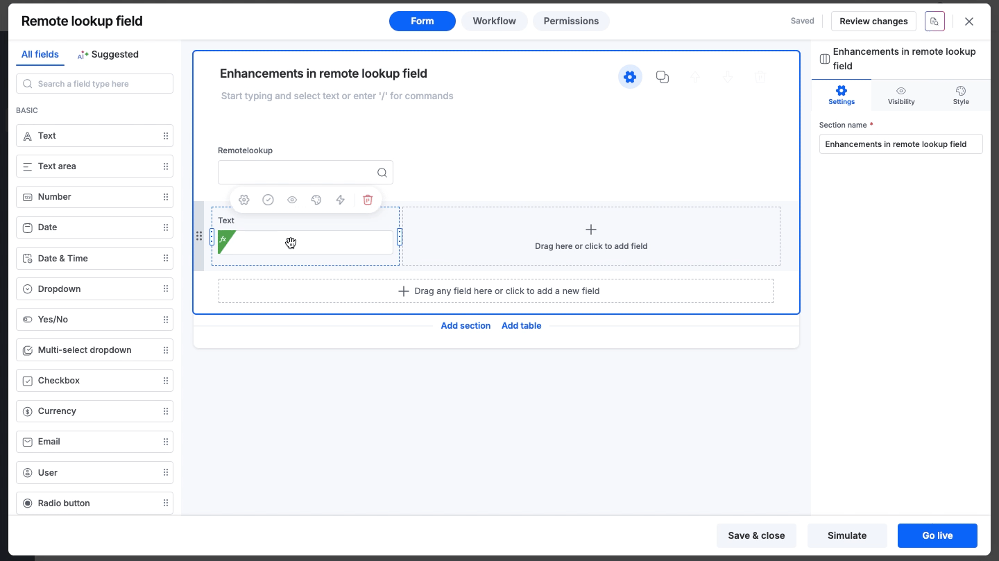 Edit field: Once all dependencies are cleared, return to the Remote lookup fieldโs settings. The field will now be fully editable.