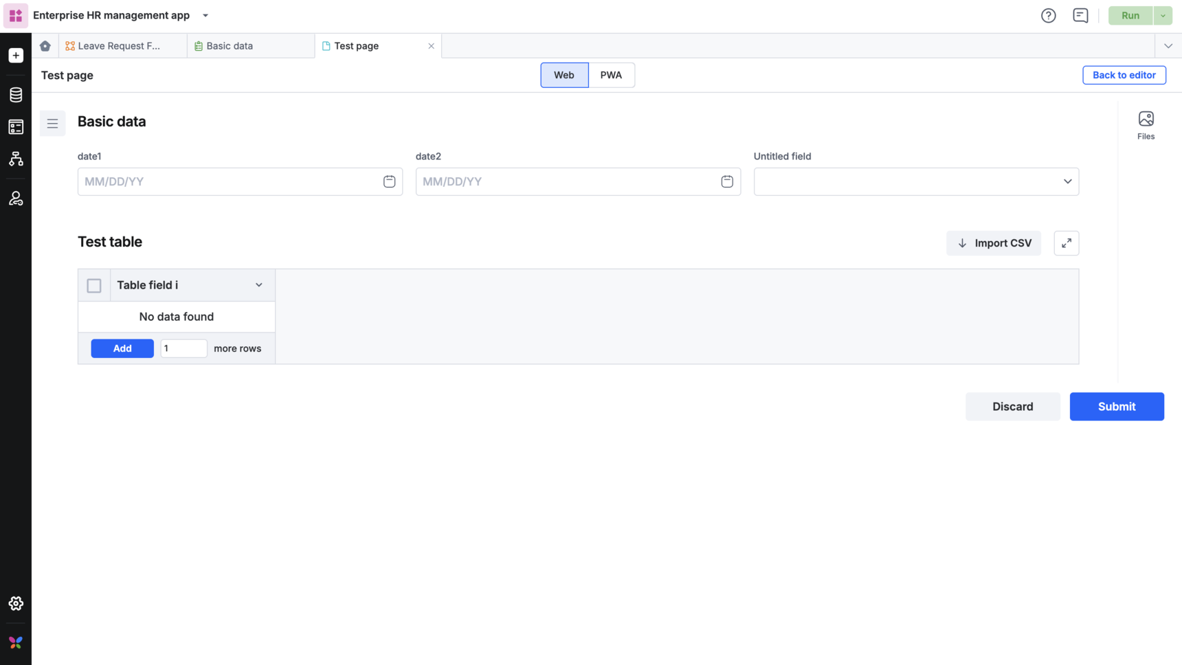 - Once enabled, the Import CSV option is available across all Dataform views, including Datatable, Sheet, and Gallery views.