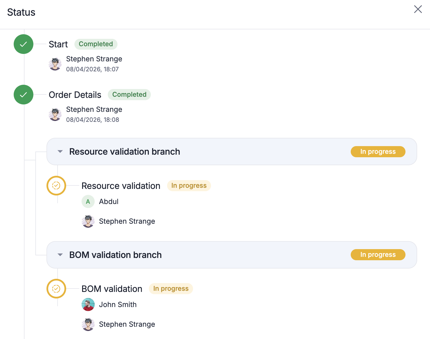 Here’s how a single task with multiple approvers appears in the workflow progress: