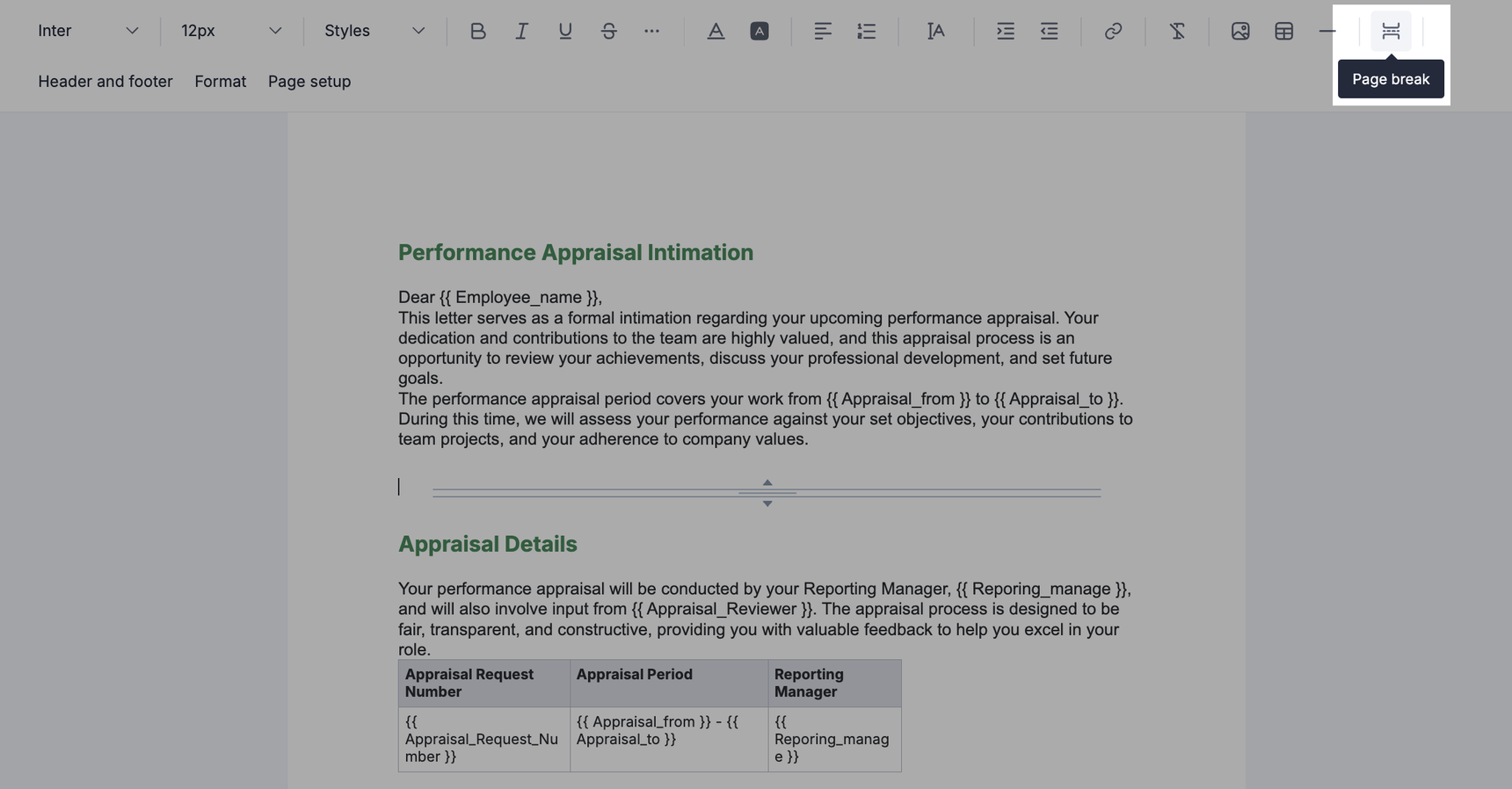 You can add as many pages as you want in your document. Click the Page break button () from the toolbar to insert a page break.