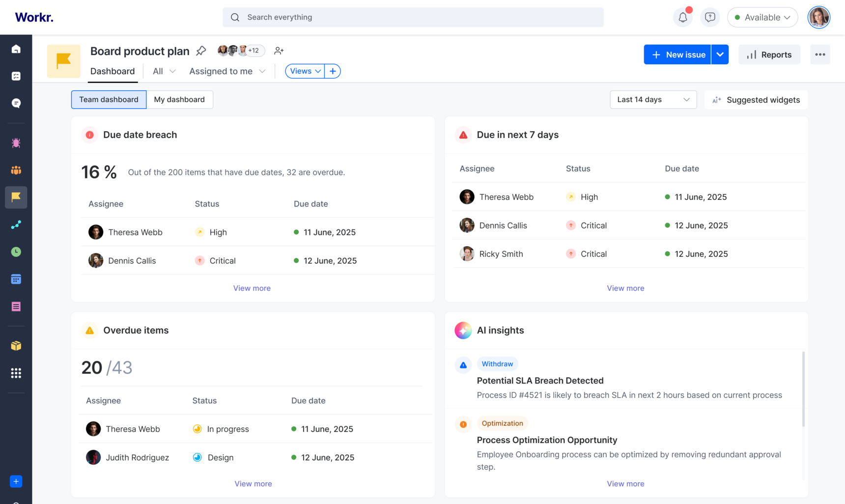 We’re introducing brand-new dashboards designed to personalize your Processes and Boards. These dashboards will give both team managers and individual users a clearer view of their work — making it easier to oversee tasks, get actionable insights, and act on them promptly.