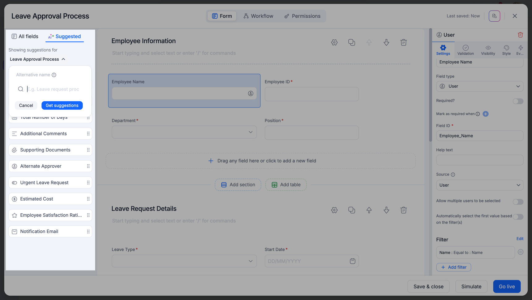 The alternative name that you provide can be a different form name for which youβd like to receive AI suggestions. You may add a generic name to your form to get apt suggestions instead of specific names used within your organization.