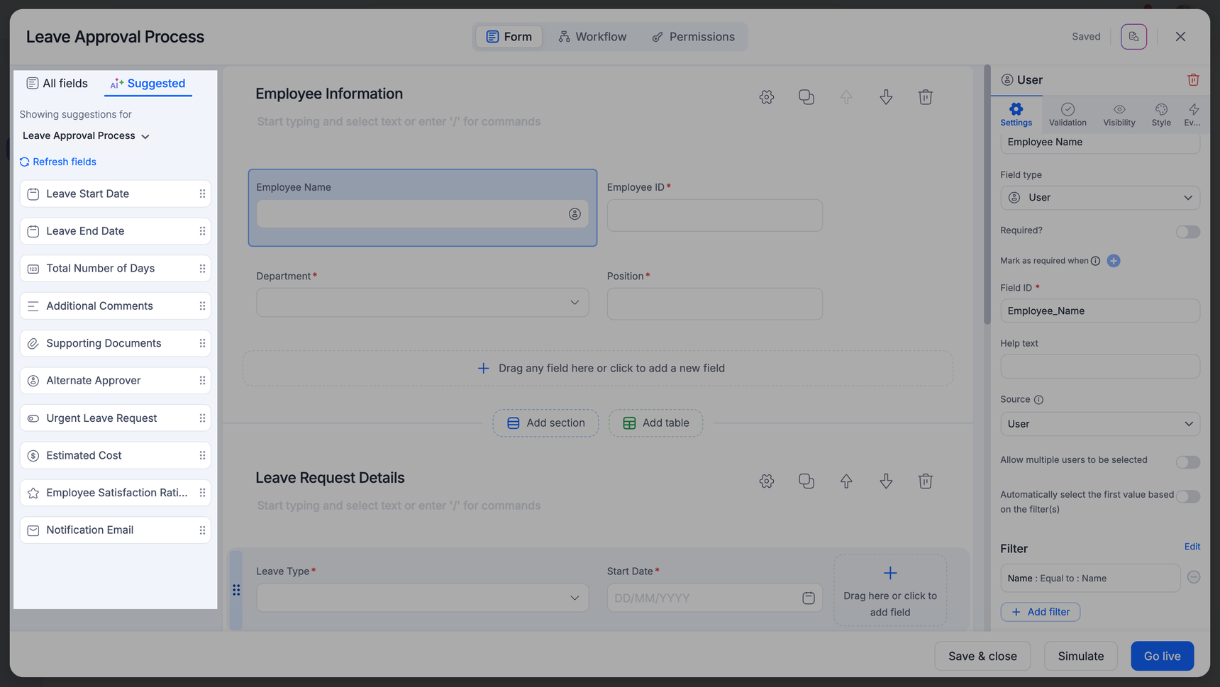 AI-suggested fields are form fields generated using Artificial Intelligence (AI), a technology that processes and infers large data through Machine Learning (ML). These fields are suggested to you based on the form name you enter.